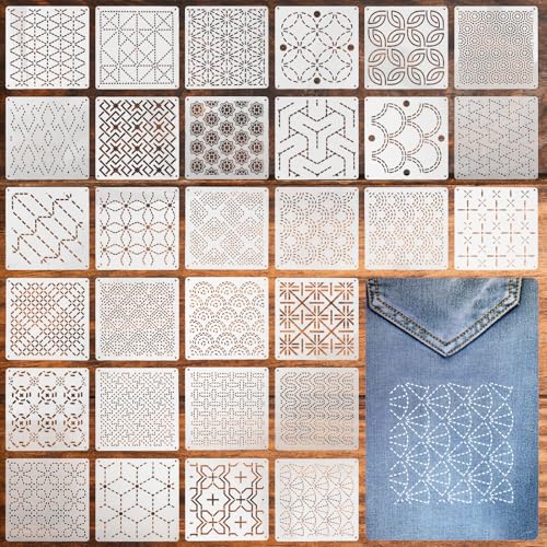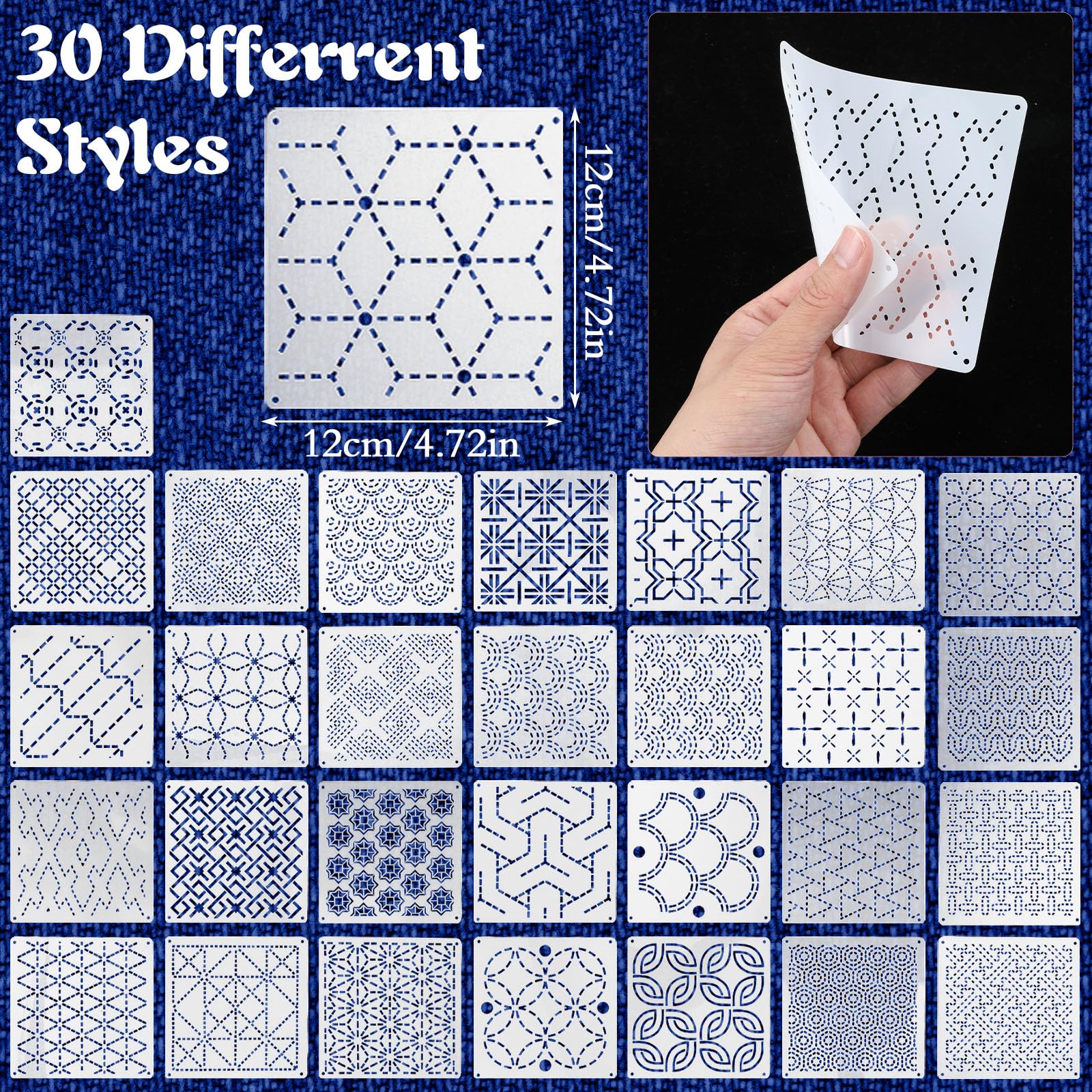 Unleash your creativity with our 30-piece sashiko quilting stencil set, each measuring 4.72 x 4.72 inches. Made from durable and flexible high-quality PET material, these stencils are designed for repeated use and easy cleaning, thanks to their wash-away feature. Perfect for both beginners and experienced crafters, these stencils offer intricate geometric patterns ideal for embellishing clothing or creating unique home decor. The flexible design ensures precise pattern transfer on various fabrics, and they are easy to handle and apply. Simply secure with tape for best results. This versatile stencil set is a must-have for your crafting toolkit and makes a thoughtful gift for embroidery enthusiasts and DIY lovers. Inspire creativity and craftsmanship with these elegant templates, perfect for personal projects or as a special present.