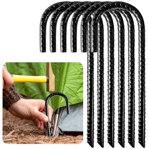 Specification Brand : UCandy BulletPoint1 : 【Material】: Galvanized steel bar piles are made of sturdy high-quality materials, which are not easy to rust and corrode. The high quality makes it durable and can be reused many times. BulletPoint2 : 【Easy to use】: The tip of the heavy-duty steel reinforcement pile is sharp and inclined, which can easily penetrate the ground, which is convenient for penetrating the ground on rocks or soft surfaces without auxiliary tools. BulletPoint3 : 【Wide Application】: Hammer these J-hook reinforced ground stakes to fix garden fences, trampolines, camping tents, canopies, barbed wire, gardens, swings, with a firmer grip, not easy to loosen, and prevent the tent or shed from sliding in the wind. BulletPoint4 : 【Quality Assurance】: If there is any problem with our products, please contact us, we will be happy to solve the problem for you. BulletPoint5 : Comprehensive Set: This pack includes 16 heavy duty metal tent pegs, each weighing 3.9 ounces, providing ample supply for any outdoor setup. Color : Black-6pcs Department : unisex-adult ExternallyAssignedProductIdentifier : 5410467171871 ExternallyAssignedProductIdentifier1 : 795973667021 ExternallyAssignedProductIdentifier2 : 0795973667021 GpsrSafetyAttestation : 1 ItemDisplayDimensions_Height : 0.67 inches ItemDisplayDimensions_Length : 1 inches ItemDisplayDimensions_Width : 0.94 inches ItemName : UCandy Heavy Duty Galvanized Steel Ground Stakes, 6pcs, Black, 2" x 8" J-Hook Anchor Stakes for Fences, Tents, Canopies ItemPackageDimensions_Height : 22.3012 centimeters ItemPackageDimensions_Length : 2.3876 centimeters ItemPackageDimensions_Width : 20.2946 centimeters ItemPackageQuantity : 20 ItemTypeKeyword : tent-stakes LineWeight : 0.1467 pounds Manufacturer : UCandy Material : Alloy Steel ModelName : Garden Rebar Stakes ModelNumber : Garden Rebar Stakes NumberOfItems : 16 NumberOfPieces : 1 PartNumber : Garden Rebar Stakes 001 ProductDescription : Wide range of applications: Fixed link fences, deer fences, digging defense dog fences, rodent fences, trampolines, metal swings, playground toys, slides, inflatable outdoor yard decoration, irrigation, steel tubing, soccer nets and landscape edging, sports training Equipment, garden trellis. Great for use as canopy pegs, tarp stakes, tent pegs and more as an anchor. ProductSiteLaunchDate : 2024-07-31T09:11:18.419Z RecommendedUsesForProduct1 : Camping RecommendedUsesForProduct2 : Outdoor Shelter RecommendedUsesForProduct3 : Garden Staking RecommendedUsesForProduct4 : Canopy Anchoring SafetyWarning : Caution: These stakes have sharp points that can cause injury. Always wear appropriate protective gear when installing or removing. Be aware of underground utilities when inserting the stakes. Ensure the stakes are securely anchored to prevent them from becoming dislodged. Avoid contact with extreme temperatures or chemicals that could damage the metal. Size : 0.4 In/10mm ID Style : Hook Design SupplierDeclaredDgHzRegulation : not_applicable SupplierDeclaredHasProductIdentifierExemption : 1 TargetAudience : Adult-Unisex UnitCount : 16 UnspscCode : 30241511