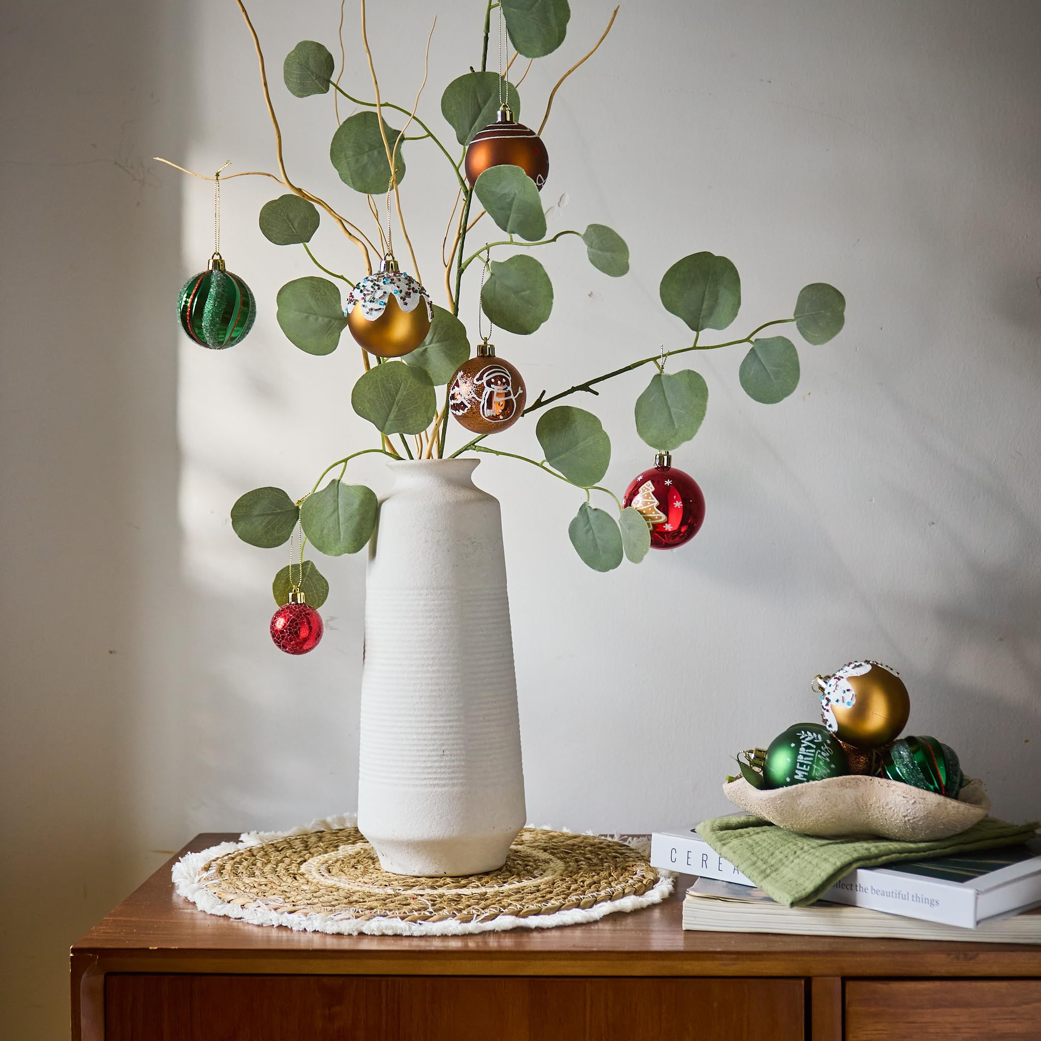 Specification Brand : DECOR BY HANNAH BulletPoint1 : 【Original Design - Ginger Bread】These Christmas ball ornaments feature charming gingerbread and donut designs. With warm, festive colors and playful shapes, they add a cozy, sweet charm to your home decor, making it feel like a joyful gingerbread house. BulletPoint10 : 【The Perfect Gift Choice】This ornament set is the perfect gift for your friends on many occasions such as Christmas, Party, Birthday and Festivals BulletPoint2 : 【Variety of Designs and Finishes】These Christmas ornaments are crafted with classic gingerbread motifs such as cup cake, snowman, gingerbread man and christmas tree to create a warm and sweet atmosphere.In addition, a blend of matte, mottled, glossy and crackle finishes helps to enhance the abundance of your Christmas decorations. BulletPoint3 : 【Kid & Pets Approachable】Our lightweight, shatterproof Christmas ornaments allow kids and pets to join in the decorating fun without any worry! BulletPoint4 : 【Ready to Hang】These Christmas ball ornaments come with pre-threaded hanging strings, making them convenient and easy to hang. BulletPoint5 : 【Measurements】21ct in total. Each ball ornament measures about 1.37-2.36 inch/3.5cm-6cm. BulletPoint6 : 【Shatterproof Balls】Crafted from high-quality plastics, our Christmas tree ornaments are both shatterproof and durable. Enjoy a festive season without the worry of easy breakage! BulletPoint7 : 【Firm Cap & Ready to Hang】The sturdy plastic caps of Xmas decor can support the weight of 335ml of water and come with a pre-tied string, making it easy to hang them on your tree or other desired locations BulletPoint8 : 【Versatile Function】Apart from being used as Christmas tree decorations, these ornaments serve multiple purposes, making them perfect for tables, porches, yards, outdoors, mini trees, indoor and outdoor use, and more. Matching your theme of Christmas stockings, tree skirts, tree toppers, wreaths, garlands, nativities, Christmas villages, and resin table decor BulletPoint9 : 【Lightweight】The Christmas hanging decorations are lightweight, making them easy to hang on your tree without weighing down the branches Color : Red Green Gold ExternallyAssignedProductIdentifier1 : 645001513380 ExternallyAssignedProductIdentifier2 : 0645001513380 ExternallyAssignedProductIdentifier3 : 00734205348611 FabricType : Nullify GpsrSafetyAttestation : 1 IncludedComponents : Hook ItemDisplayDimensions_Depth : 3 inches ItemDisplayDimensions_Diameter : 3 inches ItemDisplayDimensions_Height : 3 inches ItemDisplayDimensions_Length : 3 inches ItemDisplayDimensions_Width : 3 inches ItemDisplayWeight : 2 pounds ItemName : DecorbyHannah Christmas Ornaments Decorations,21ct Red Green Gold Christmas Tree Ornaments Set, Shatterproof Gingerbread Theme Decorative Hanging Ball Ornaments for Christmas Tree Table Decor ItemPackageDimensions_Height : 24.511 centimeters ItemPackageDimensions_Length : 6.4008 centimeters ItemPackageDimensions_Width : 24.1046 centimeters ItemPackageQuantity : 1 ItemShape : Spherical ItemTypeKeyword : decorative-hanging-ball-ornaments Manufacturer : DecorbyHannah Material : Plastic ModelName : Vickerman Shiny Finish Shatterproof Christmas Ball Ornament ModelNumber : IAN-Liliful-1262 MountingType : Hanging NumberOfItems : 1 NumberOfPieces : 21 Occasion : Christmas OccasionType : Christmas OccasionType1 : Christmas OccasionType2 : New Year OccasionType3 : Christmas PackageLevel : unit PartNumber : IAN-Liliful-1262 ProductDescription : Christmas Ball Ornaments ProductSiteLaunchDate : 2023-05-30T08:51:56.858Z SafetyWarning : Choking hazard: Small parts may break off. Keep out of reach of children. Fire hazard: Keep away from heat sources and open flames. Always follow the manufacturer's instructions for safe handling, display, and storage. Scent : Festive Size : 3" Style : Red and White SubjectCharacter : Christmas SupplierDeclaredDgHzRegulation : not_applicable SupplierDeclaredDgHzRegulation1 : not_applicable SupplierDeclaredDgHzRegulation2 : not_applicable SupplierDeclaredDgHzRegulation3 : not_applicable SupplierDeclaredDgHzRegulation4 : not_applicable SupplierDeclaredDgHzRegulation5 : not_applicable TargetAudience : Adult Theme : Gingerbread UnitCount : 21 UnspscCode : 60121000
