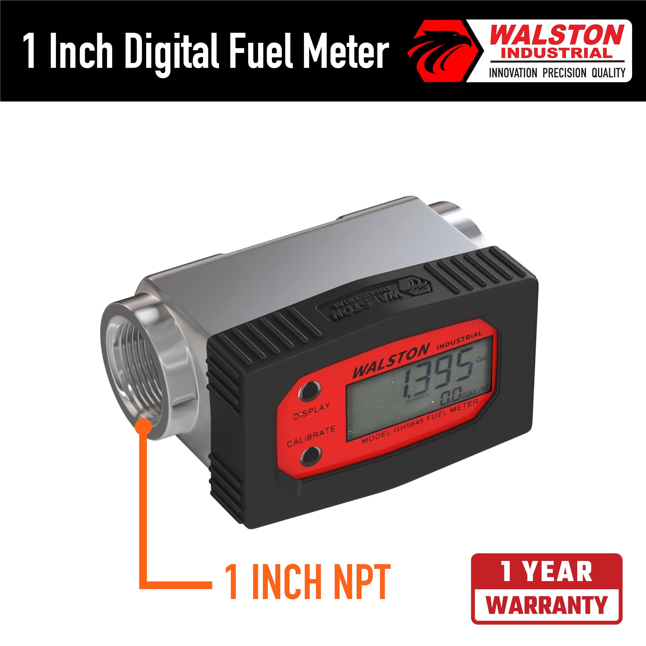Specification AgeRangeDescription : Adult BatteriesIncluded : 1 BatteriesRequired : 1 Brand : Walston Industrial BulletPoint : Combined Form, Mercury-Free Hydrometers^ For petroleum testing BulletPoint1 : Compatibility: Diesel, gasoline, kerosine, coolants, hydraulic oils, motor oils, and mineral spirits BulletPoint2 : Shock and Vibration Resistance: Enhanced durability to withstand heavy vibration or impact, which often occurs in industrial or field environments. BulletPoint3 : Extended Battery Life: Auto sleep screen for extended battery life (powered by 2 AAA batteries) BulletPoint4 : Units : 4 units of measurement, gallon, quart, liter, and pint. Easily reset to your preferred unit. BulletPoint5 : Flow rate: 3-30 GPM BulletPoint6 : 1 Inch NPT Threads: Fuel Meter has female 1 inch NPT threads at inlet and outlet. BulletPoint7 : Display Brightness and Readability: Enhancing the screen brightness or using an anti-glare display for easier readability in various lighting conditions, especially in direct sunlight. BulletPoint8 : Waterproofing: Improved water and dust resistance to withstand rugged, outdoor industrial environments. CareInstructions : Wipe Clean Color : Blue ExternallyAssignedProductIdentifier : 7688540624103 ExternallyAssignedProductIdentifier1 : 0198168727249 ExternallyAssignedProductIdentifier2 : 198168727249 IncludedComponents : Fuel Meter ItemLength : 14.96 inches ItemName : Walston Industrial GH-5645 Digital Fuel Meter 1 Inch, Heavy Duty Fuel Meter for Diesel, Gasoline, Kerosine, Lubricants, 1” NPT ItemPackageDimensions_Height : 3.75 inches ItemPackageDimensions_Length : 7 inches ItemPackageDimensions_Width : 3.5 inches ItemPackageQuantity : 1 ItemTypeKeyword : science-lab-flowmeters Manufacturer : Walston Industrial ManufacturerMinimumAge : 36 Material : Metal MetalType : other ModelNumber : GH5645 NumberOfItems : 1 PartNumber : GH5645 ProductDescription : Walston Industrial has set a new standard for quality in every area in which we sell. Our relentless pursuit of perfection has brought us to the cutting edge of technology and brought you the highest quality products on the market. The Walston Industrial GH5630 digital flow meter is a turbine type meter with a cast aluminum body. Meter features digital display for convenience and variable unit selection. The GH5645 is powered by 2 AAA batteries that come included with the flow meter. The Walston Industrial GH5645 is intended for flow rates from 3-30 GPM (10-100 LPM). ProductSiteLaunchDate : 2024-09-18T07:00:00.000Z Reusability : Reusable Size : DN10 0.16-2.5m3/h, 220V Style : 0~180℃ 50CC/R SupplierDeclaredDgHzRegulation : not_applicable TargetAudienceKeyword : as described TargetAudienceKeyword1 : unisex TargetAudienceKeyword2 : as described TargetAudienceKeyword3 : as described TargetGender : unisex UnitCount : 1 UnspscCode : 41110000
