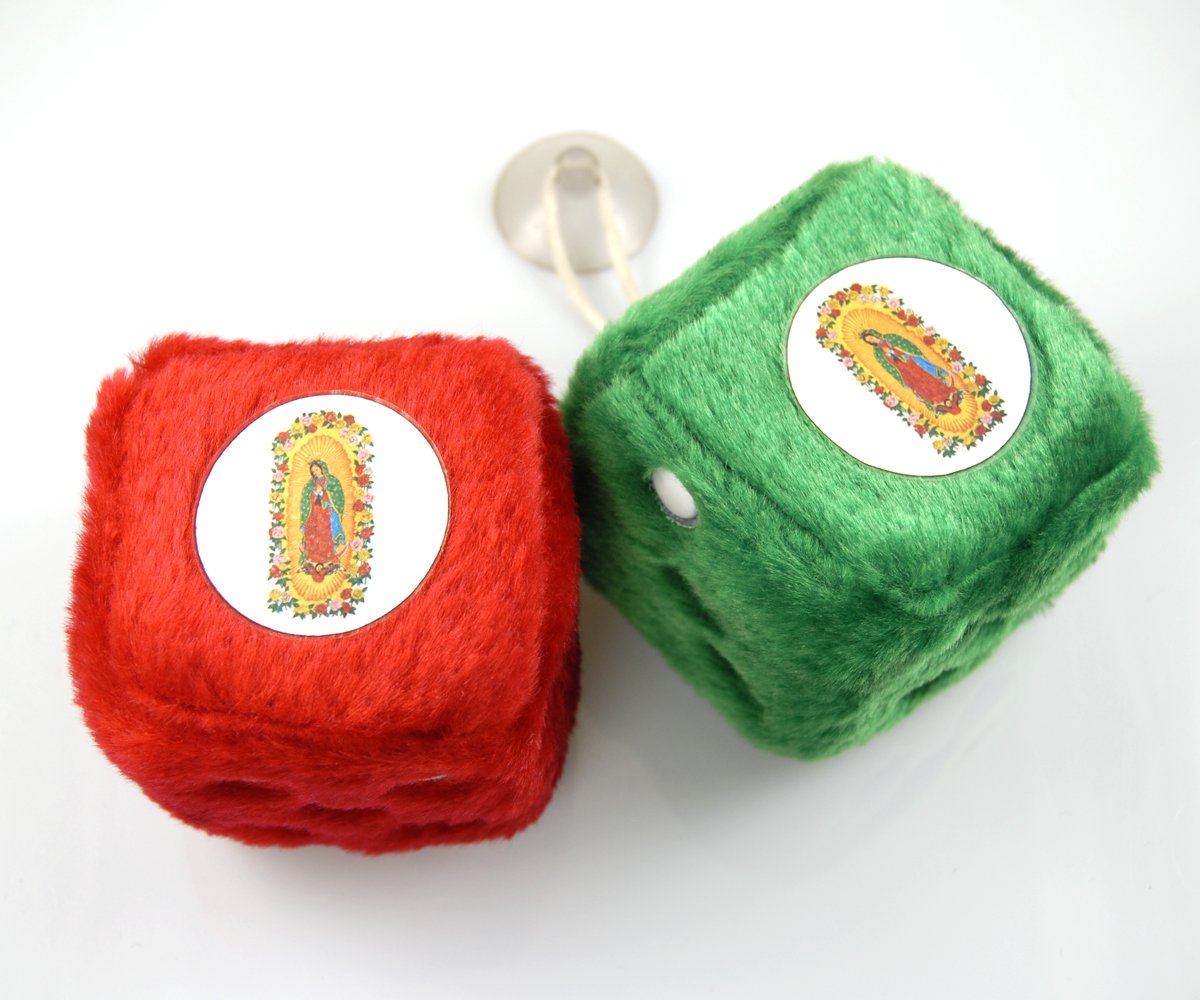 "Guadalupe" Car Fuzzy Dice Green/Red